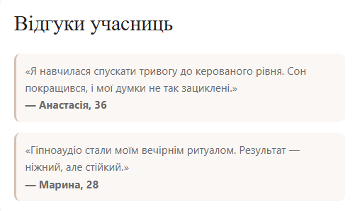 - Гіпносесія «Заспокоєння тривоги»