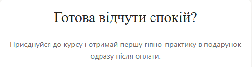 для зниження тривоги, повернення у тіло та відновлення спокою. 5 модулів — відео + гіпнопрактики + чек-лист;Практичні завдання та робочий зошит; Групова підтримка в закритому чаті; Доступ до матеріалів — 6 місяців